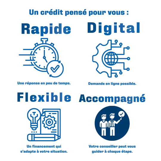 1. Vous faites votre demande d'information ou de crédit. | 2. Votre dossier est étudié rapidement |