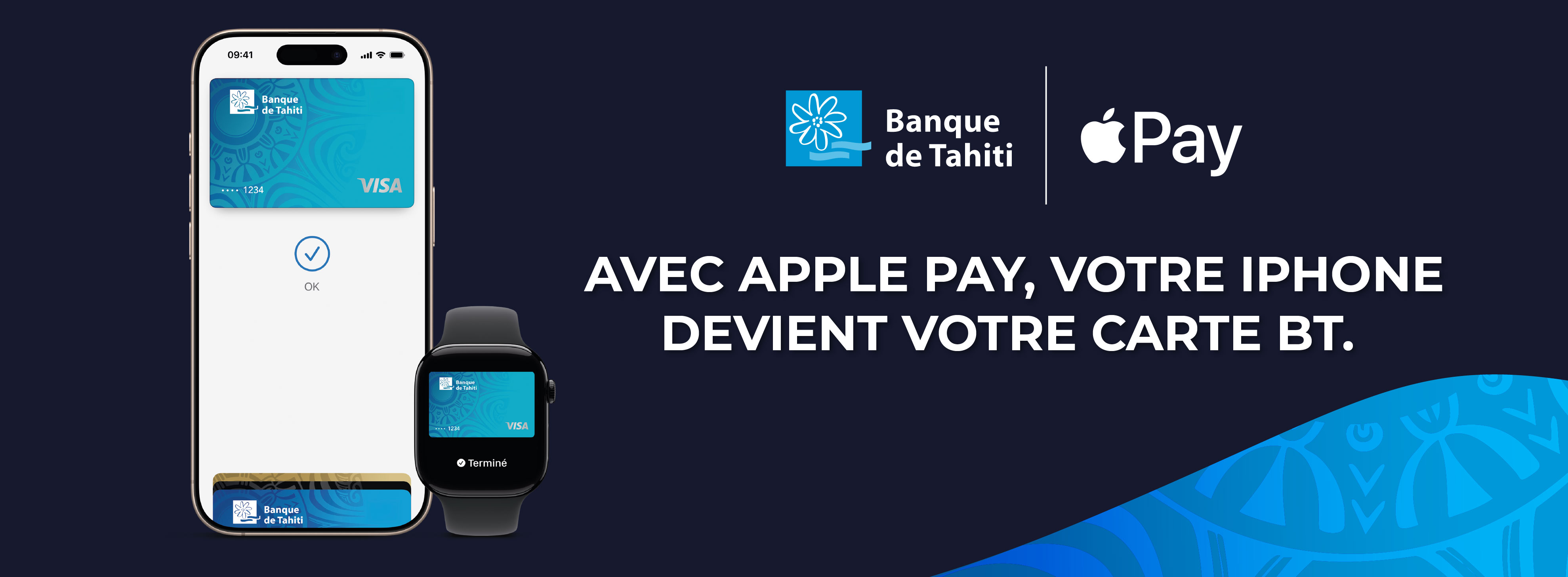 En ajoutant votre carte bancaire à Apple Pay, vous conservez tous les avantages de votre carte tout en profitant d’un paiement fluide et sécurisé. Lors de chaque transaction, les données de votre carte ne sont jamais communiquées au commerçant : elles ne sont ni stockées sur votre appareil, ni partagées, garantissant ainsi une protection optimale de vos informations personnelles.